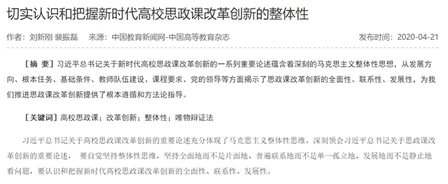 原文标题:切实认识和把握新时代高校思政课改革创新的整体性