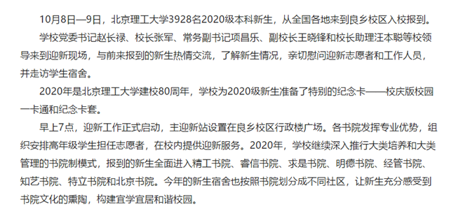 北京理工大学喜迎2020级本科新生入校