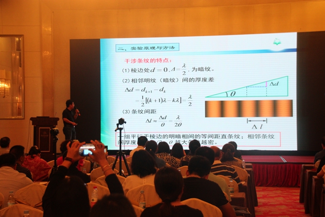 丰富的知识储备,脚踏实地的付出,以及其在物理实验课程编排上的“苦功夫”,成就了刘伟在教学工作中的优异成绩。在第三届 “高等教育杯”全国高等学校物理基础课程青年教师讲课比赛中,刘伟一路过关斩将,以第一名的成绩通过北京市预赛,在之后的华北地区复赛中,再次斩获第一名,并代表华北地区高校参加全国决赛。最终,经过激烈角逐,刘伟在决赛的12位优秀教师中脱颖而出,拿到了本届比赛的全国一等奖。在颁奖典礼上,作为仅有的两位一等奖获得者之一,刘伟受组委会委托,还为400余位来自全国各高校的观摩教师,做了“牛顿环与劈尖干涉实验”的示范教学。