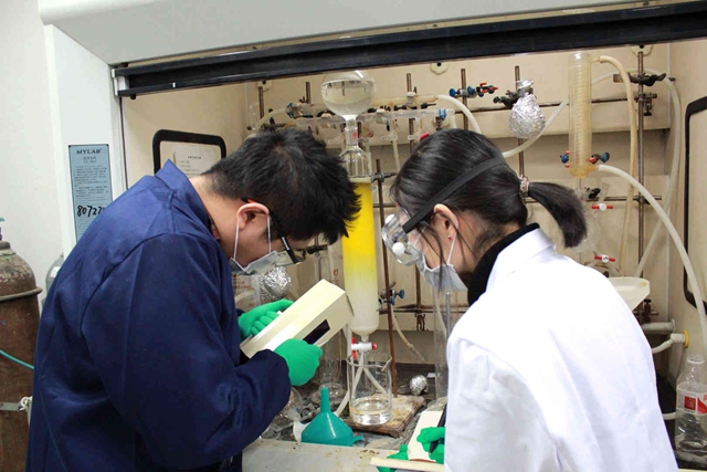 “我们的教师办公室不大,由于紧邻实验室,经常有各种化学气味直接从楼道或窗户里钻进来。”但是当被问到是否愿意把办公室搬至别处时,董宇平的回答却是否定的。“自然科学离不开做实验,而化学实验更是其中的典型代表,不仅安全要求高,而且结合实验过程随时讨论指导更是必不可少,因此我们教师就是要和学生、和实验平台、和实验结果在一起。”对于董宇平和他的团队来说,“在一起”很重要,科研工作需要有组织开展,科研团队实力和竞争力的提升必须要团结协作。