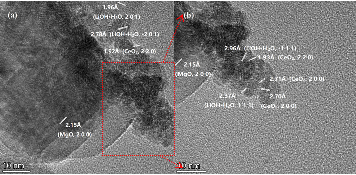 图3 MgCeLi-8-6 脱水后高分辨透射电镜图