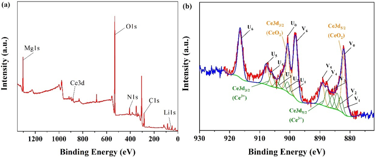 图4 MgCeLi-8-6 脱水后产物的XPS图