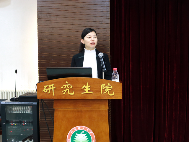 罗爱芹致开幕词,她以“健康、快乐、团结、发展”的核心文化及育人理念为切入点,强调了“创新”的重要性,指出研究生是学校创新培养的重点,研究生论坛营造了良好的学术氛围,希望同学们借研究生学术论坛的平台,总结自己在科学研究中的工作,深入挖掘实验现象背后的本质,展现学术风采。也希望每位研究生借研究生学术论坛的东风,以此为契机,在求学生涯中不断夯实学术根基,在科学研究工作中调动自己的学术创新思维,为国家的科技发展贡献力量,并预祝本次研究生论坛取得圆满成功。