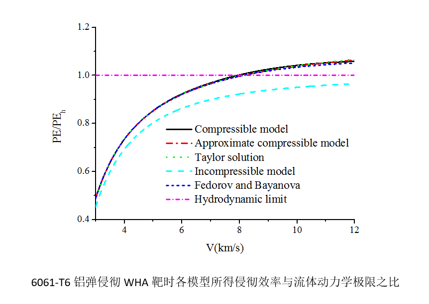 进一步利用近似可压缩侵彻模型研究可压缩性和强度对钨合金长杆弹和铜射流侵彻半无限靶的影响。揭示了可压缩性通过提高弹和靶驻点压力来影响侵彻效率的机理。一般而言,在撞击速度较低时,强度效应对侵彻深度影响较大,而可压缩性影响可忽略;在撞击速度较高时,强度效应影响很小,而可压缩性有一定影响。进一步借助虚拟原点方法,通过侵彻速度和撞击速度的线性关系引入可压缩性和强度,研究强度和可压缩性对射流侵彻的影响,结果表明靶的强度效应对侵彻深度影响严重。