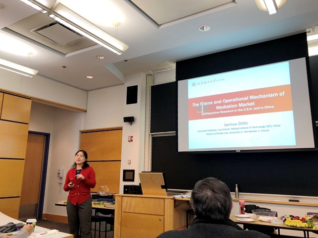 近期,周建华围绕其研究课题的进展,在哥大法学院成功举办了学术讲座,讲座主题为《调解市场化框架构建和运作研究——从中美两国比较视角出发》(The Frame and Operational Mechanism of Mediation Market- Comparative Research in the U.S.A. and in China)。讲座内容从四个关键词“什么(what)”、“为什么(why)”、“今天(today)”和“明天(tomorrow)”对调解在中美两国的发展实践进行比较,并最终对中国调解的未来发展提出构建方案。讲座内容受到参与学者的热情关注,并围绕调解中的问题展开了热烈讨论。