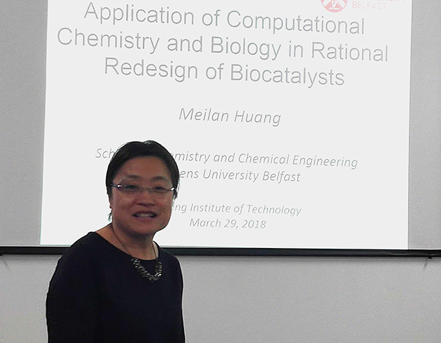 编辑:秦月 审核:赵文祥 阅读次数:应北京理工大学化学与化工学院邀请,英国贝尔法斯特女王大学黄美兰博士于3月29日下午来到北京理工大学化学与化工学院,为北理工师生带来题为 “The application of computational chemistry and biology in rational redesign of biocatalysts” 的学术报告。生化工程系的李春教授主持了本次学术报告会,化学与化工学院教师及研究生四十余人参加了报告会。