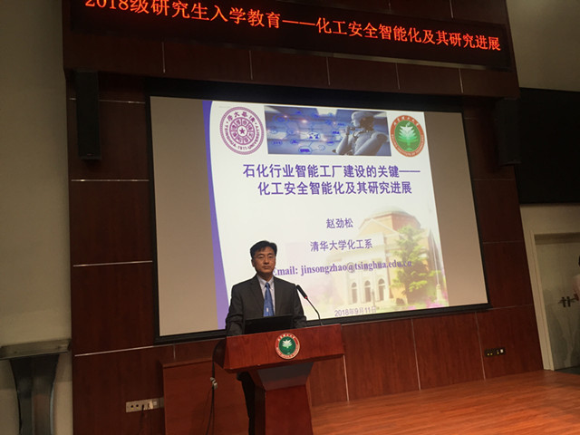 应北京理工大学化学与化工学院邀请,清华大学化工系主任、过程系统工程研究所所长赵劲松教授于9月11日上午来到北京理工大学化学与化工学院,为北理工师生带来题为“石化行业智能工厂建设的关键:化工安全智能化及其研究进展”的学术报告。李春教授主持学术报告会,化学与化工学院教师及研究生近300人参加了报告会。