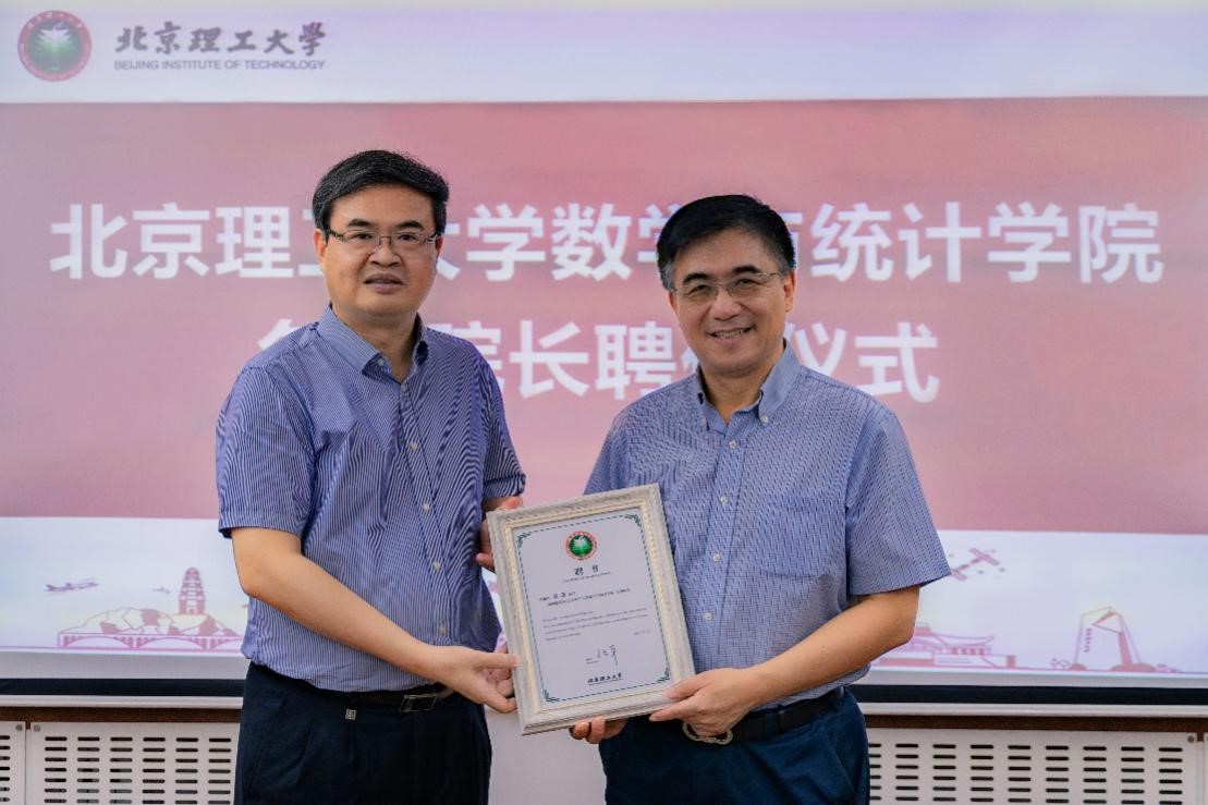 下午,在2号楼233会议室,学校举行了汤涛院士任北京理工大学数学与统计学院名誉院长聘任仪式。聘任仪式由校党委副书记、副校长项昌乐教授主持,校长张军院士向汤涛院士颁发名誉院长聘书。张军校长与汤涛院士均表示要进一步加强两校数学学科的交流与合作,促进数学与统计学院在人才培养、科技创新、师资队伍与合作办学方面取得新的突破。