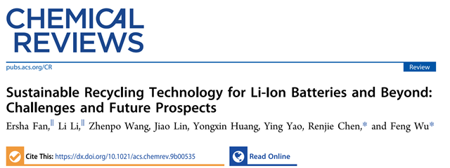 北京理工大学在Chem. Rev.上发表《锂离子电池及电池新体系的可持续回收技术:挑战和未来前景》综述文章