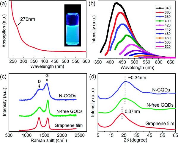 石墨烯是一种由碳原子组成六角型呈蜂巢晶格的平面薄膜,只有一个碳原子的厚度,具有极其优异的光、电、机械等性能,其发现者也于2010年获得了诺贝尔物理学奖。量子点是准零维的纳米材料,由少量的原子所构成,三个维度的尺寸都在100纳米以下,外观恰似一极小的点状物。电子运动在三维空间都受到了限制,因此有时被称为“人造原子”,粒径一般介于1~10nm之间,受激后可以发射荧光。石墨烯量子点综合了以上二者的特性,具有优良的电学、热学、光学、机械性能。