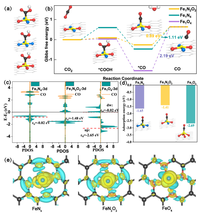 图4. 理论计算揭示Fe1N2O2/NC催化剂优异性能的原因
