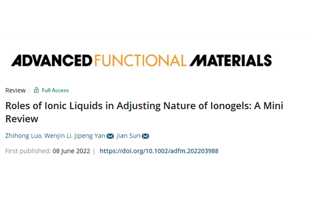 北理工课题组在离子凝胶领域发表综述文章