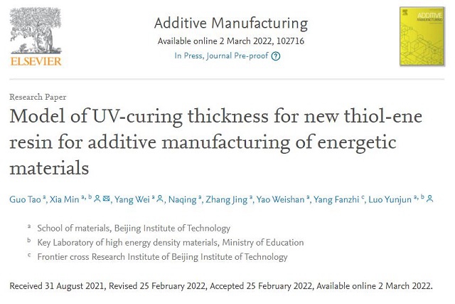 近日,北京理工大学材料学院夏敏教授、罗运军教授课题组在含能材料相关光固...