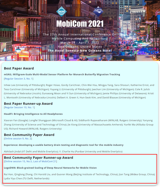 近日,CCF-A类顶会ACM MobiCom 2021宣布最佳论文奖项...
