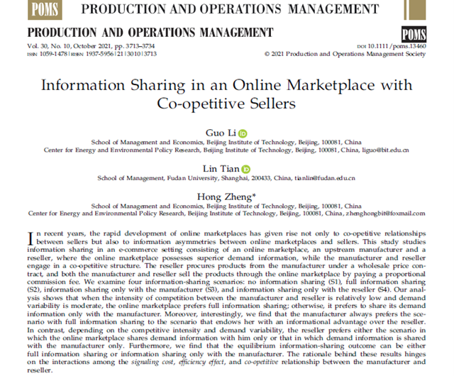 近日,北理工管理与经济学院李果教授及郑鸿博士与复旦大学管理学院田林副教...