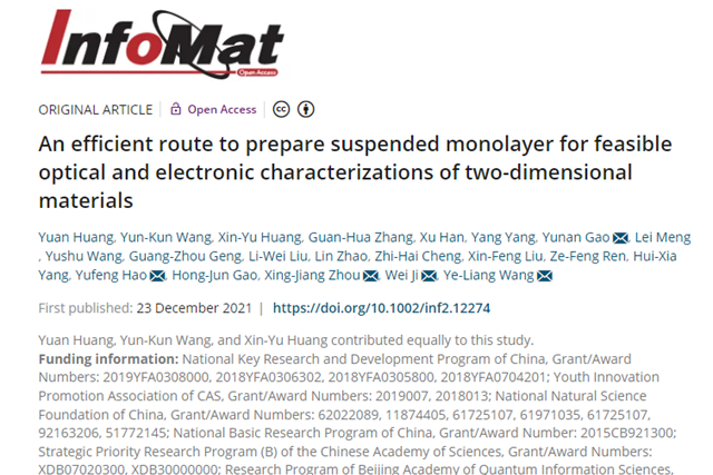 近日,北京理工大学黄元、王业亮教授团队在二维材料悬浮结构方面取得研究成...