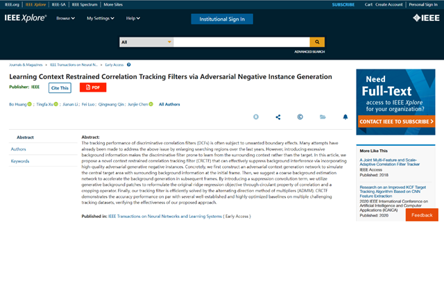 近日,北京理工大学光电学院许廷发科研团队在对抗学习相关跟踪领域取得新进...
