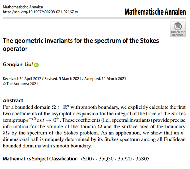 日前,北京理工大学数学与统计学院刘跟前教授在线发表于国际权威数学期刊《...