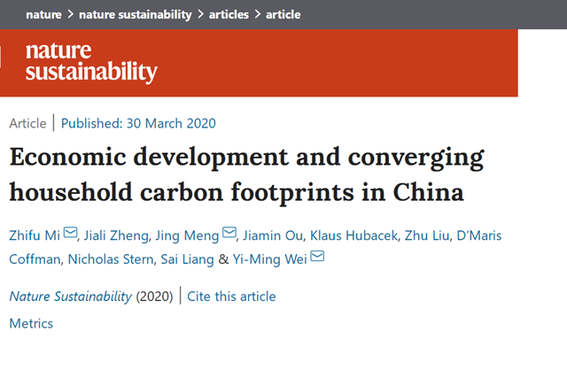 3月30日,北京理工大学魏一鸣教授团队的成果《中国经济增长和家庭碳足迹...