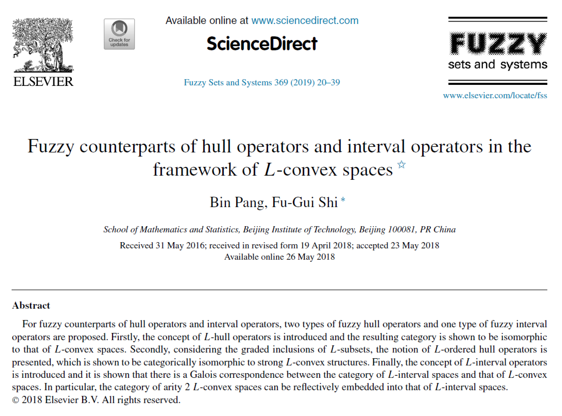 日前,北京理工大学数学与统计学院庞斌副研究员和史福贵教授在国际顶级学术...