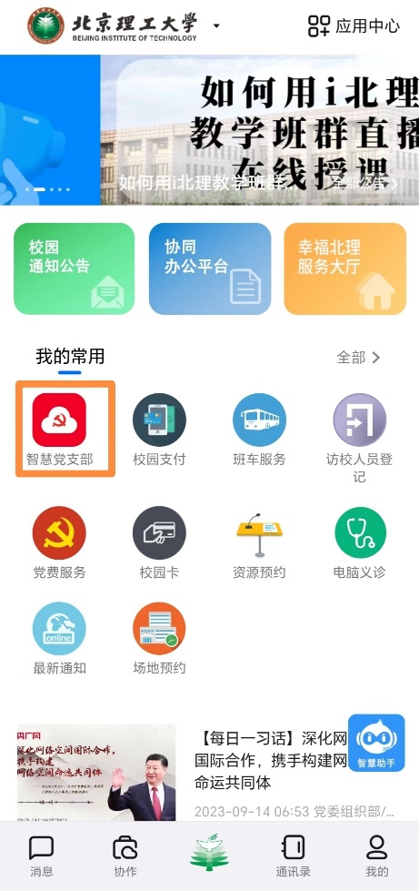 移动端:在i北理“全部应用”中搜索“智慧党支部”,点击进入,建议横屏观看。