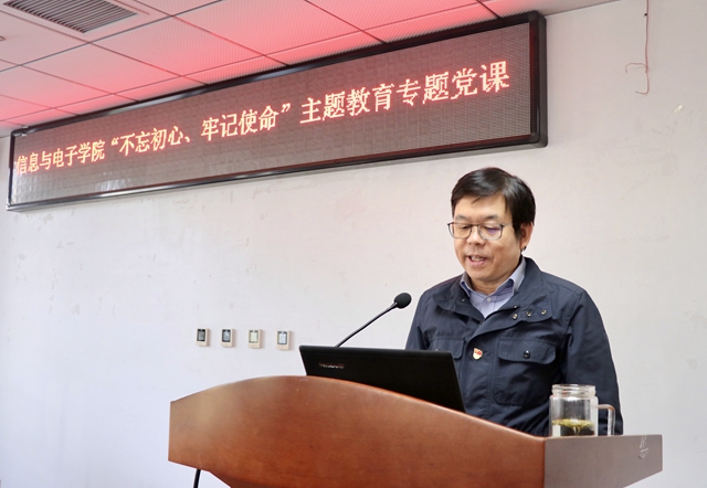 信息与电子学院领导班子成员总结开展主题教育以来的学习收获和调研成果,结合自身业务工作,精心准备讲稿,精彩纷呈的党课于10月29日下午精彩开讲。院班子成员、院领导所在党支部党员、院领导联系师生支部党员和入党积极分子共计200于人齐聚202报告厅认真听讲。本次院领导班子集体讲党课活动由党委书记薛正辉主持,指导组副组长、组织部常务副部长、党校常务副校长李德煌参加。