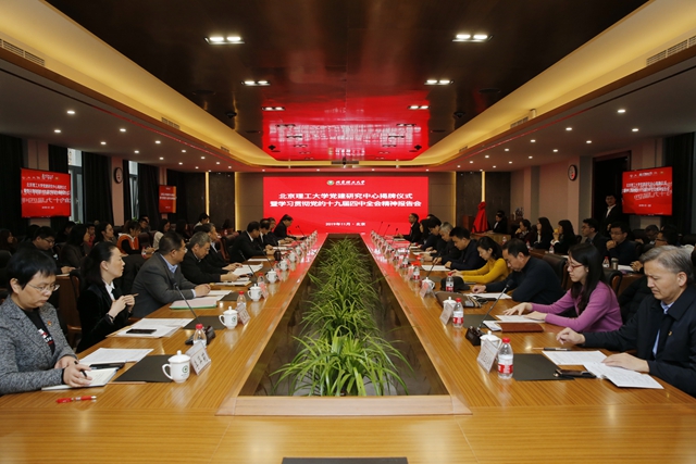 在“不忘初心、牢记使命”主题教育深入开展之际,11月29日,北京理工大学党建研究中心揭牌仪式暨学习贯彻党的十九届四中全会精神报告会在北京理工大学举行。工业和信息化部直属机关党委一级巡视员田川,中国兵器工业集团公司党组书记、董事长焦开河,中国葛洲坝集团股份有限公司党委书记、董事长陈晓华,中组部党建研究所原巡视员、全国党建研究会原专职副秘书长陈东平,北京首航艾启威节能技术股份有限公司副总经理杨睿,北京理工大学党委书记赵长禄、党委常务副书记项昌乐、党委副书记包丽颖出席揭牌仪式。会议由项昌乐主持。