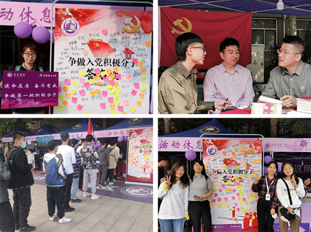 在2020级本科生入学报到日,在睿信书院“争做2020级首批入党积极分子”签名墙上,一张张心形小纸条拼成了党徽的形状,纸条上写满了同学们对于加入中国共产党的向往和对于未来报效祖国、服务人民的情怀。