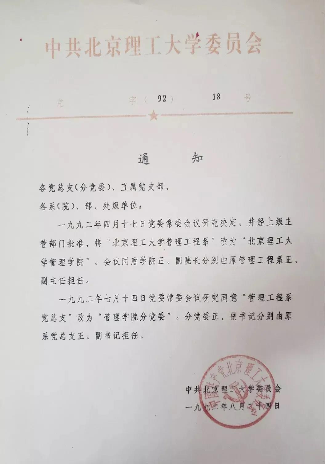1998年,根据学校发展战略的需要,管理学院正式更名为管理与经济学院,管理学科的发展进入了一个崭新的历史阶段。如今,北京理工大学管理与经济学院不仅拥有8个系,5个本科专业,三个一级学科博士点,还拥有一支高水平的师资队伍,科研经费充足,建设了多个高水平科研中心、教学中心、实验室和创新基地,大力开展国际化办学,更通过国际AACSB认证、AMBA认证、EQUIS认证、CAMEA认证,办学能力获得国际认可。