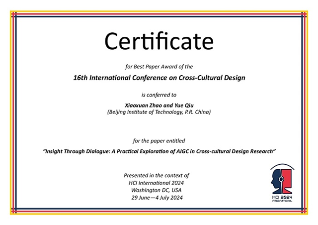 7月2日,在美国华盛顿特区举办的HCI International 2024(人机交互国际大会)公布了本届会议最佳论文奖。北京理工大...
