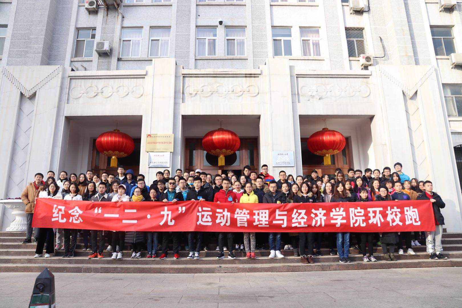 重走延安路,铭记一二九。2017年12月9日纪念“一二·九”运动管理与经济学院环校跑活动在主楼前顺利开展,百余名研究生同学重温了母校历史校址与一二九运动的记忆。此次活动,旨在让同学们重温那段令人热血沸腾的历史,激发爱国的热情,弘扬爱国主义、集体主义的光荣传统,营造良好的校园文化气氛,用优秀的校园文化活动引导、激励学生健康成长。