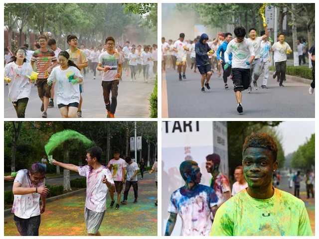 “无色彩、不青春”,随后活动进入“校园彩跑”群众趣味比赛单元,参赛选手身着白色T恤,手持彩跑粉,在蓝、粉、绿、黄、红交叠的彩粉中,尽情奔跑,整个方阵瞬间变得炫丽缤纷,整个赛场沉浸在一片欢快声中,释放青春能量,燃动多彩校园。