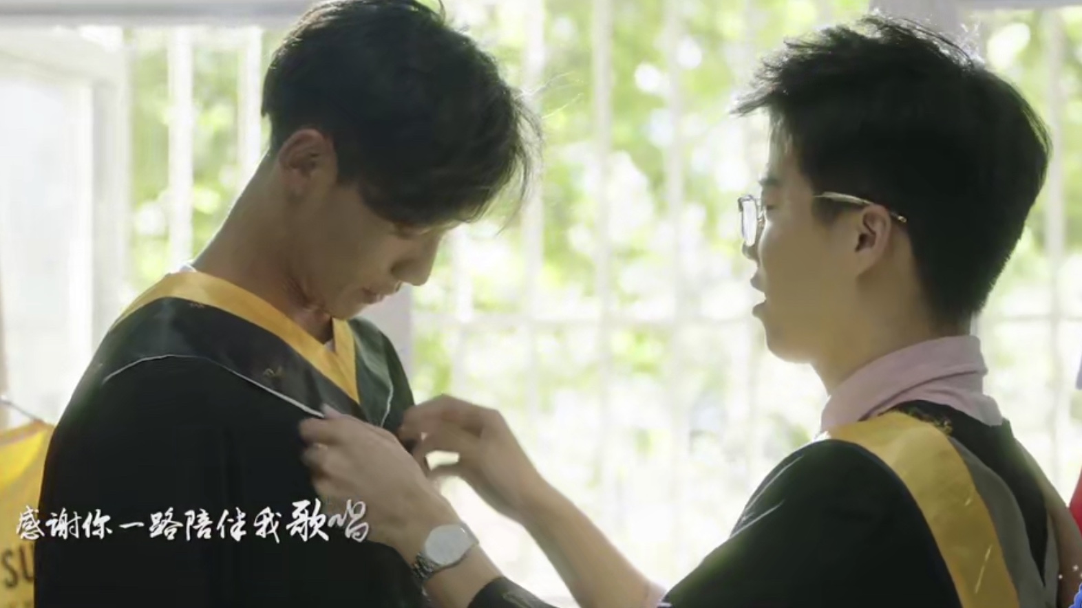 “几度花开花落,有时快乐有时落寞,很欣慰生命某段时刻,曾一起渡过。”机车学院献上了合唱歌曲《凤凰花开的路口》,用歌声在分别的路口为同学们默默祝福。