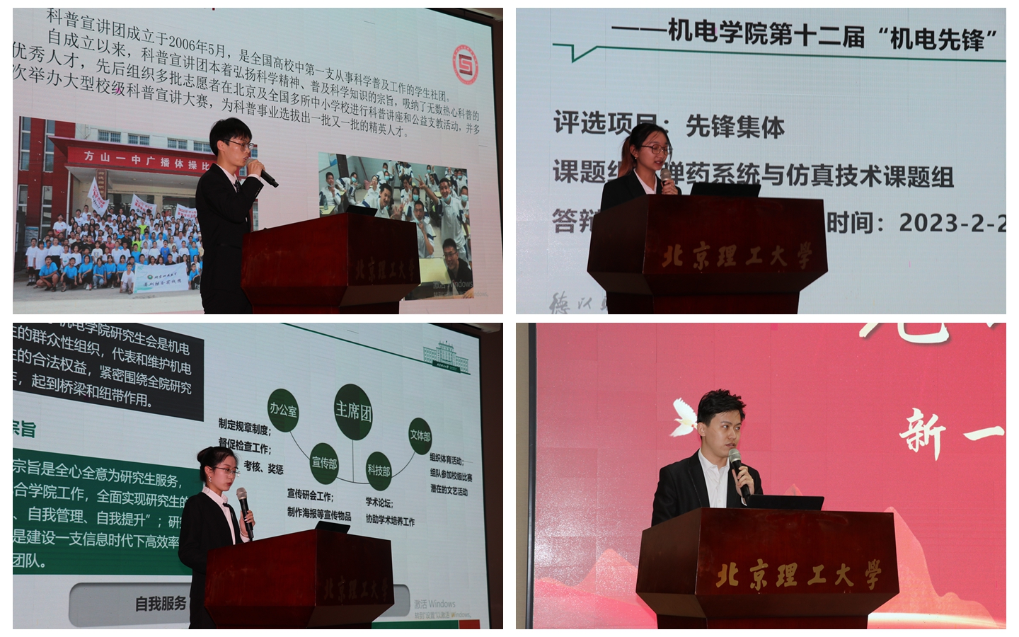 先锋集体们各展所长,从社团、党支部、课题组到宿舍,全方位展示了机电学子热爱集体、团结奋斗的精神面貌。
