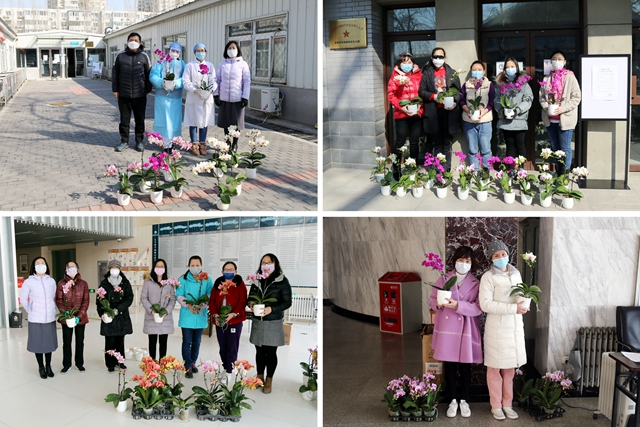图 女教职工们手捧美丽的鲜花,祝愿抗疫完胜日早点到来,祝福一线抗疫同胞平安归来。