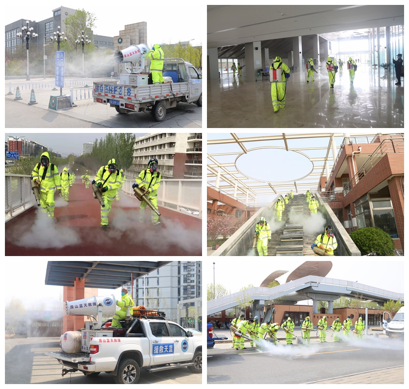 为有效应对疫情,创造安全有序的校园环境,切实保障广大师生的身体健康,4月10日,良乡校区管理处联合北京蓝天救援队房山分队对学校良乡校区进行全面消毒消杀工作。