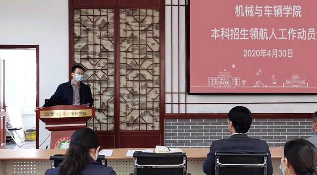 为进一步贯彻落实学校本科招生工作会议精神,全面推进疫情防控新形势下内蒙、湖南两地招生宣传工作高效有序开展,4月30日,机械与车辆学院召开了2020年本科招生工作动员会。教务部副部长范文辉,学院院长姜澜、党委书记冯慧华、副院长黄彪出席会议,学院招生工作组三十余位领航人到场参会。会议由学院党委副书记、副院长孙硕主持。