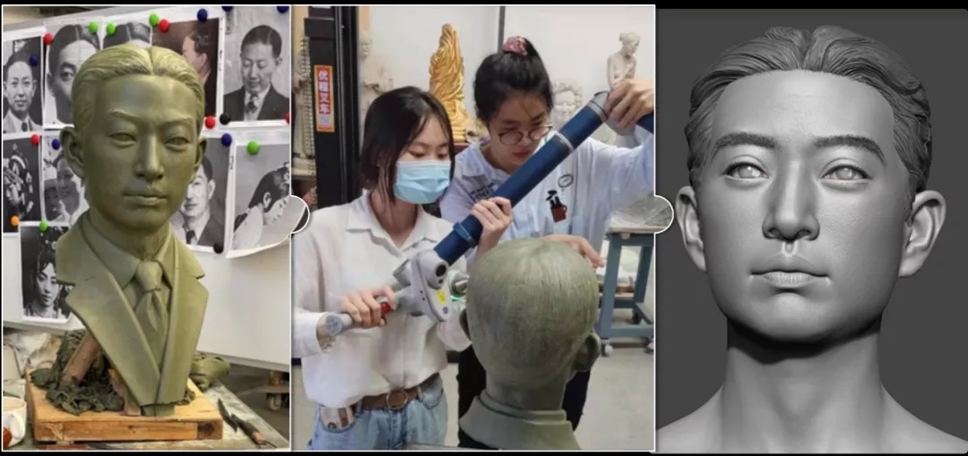团队用高精度激光扫描仪对雕像进行扫描,从而获得梅先生的基础表情。在得到基本扫描模型后,通过数字化雕刻流程对模型的细节进行处理。因为雕塑艺术本身不够具象,因此团队还需要在在模型骨像、皮肤细节、毛发细节、眼神光等细节进行补充完善。