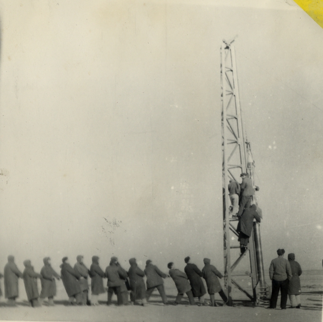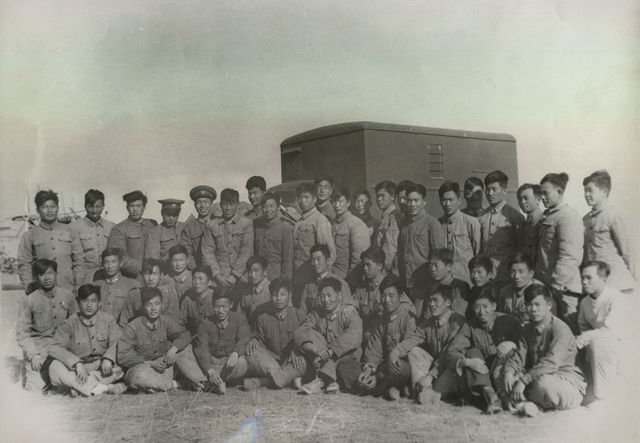 北京工业学院师生火箭发射场合影